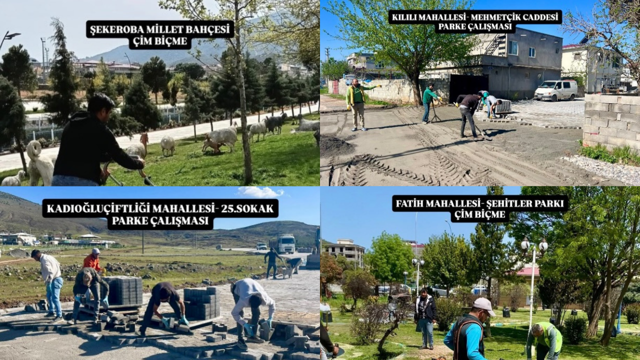 Kılılı Mahallesi Mehmetçik Caddesi’nde devam eden parke çalışmalarıyla birlikte mahalle estetiği artırılırken, Şekeroba Millet Bahçesi’nde çim biçme çalışmalarıyla yeşil alanlar bakımdan geçirildi. Türkoğlu Millet Meydanı’nda ise genel bakım çalışmaları yapılarak meydanın daha düzenli ve temiz bir görünüme kavuşması sağlandı.